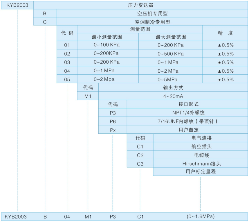 KYB2003B空壓機專用壓力變送器以進口壓力傳感器為敏感元件,采用先進補償技術精制而成,具有較高的可靠性和穩定性。本產品性能優越,并具有結構精巧,安裝簡易等特點,是針對空壓機專門研發的一款高質價比產品。