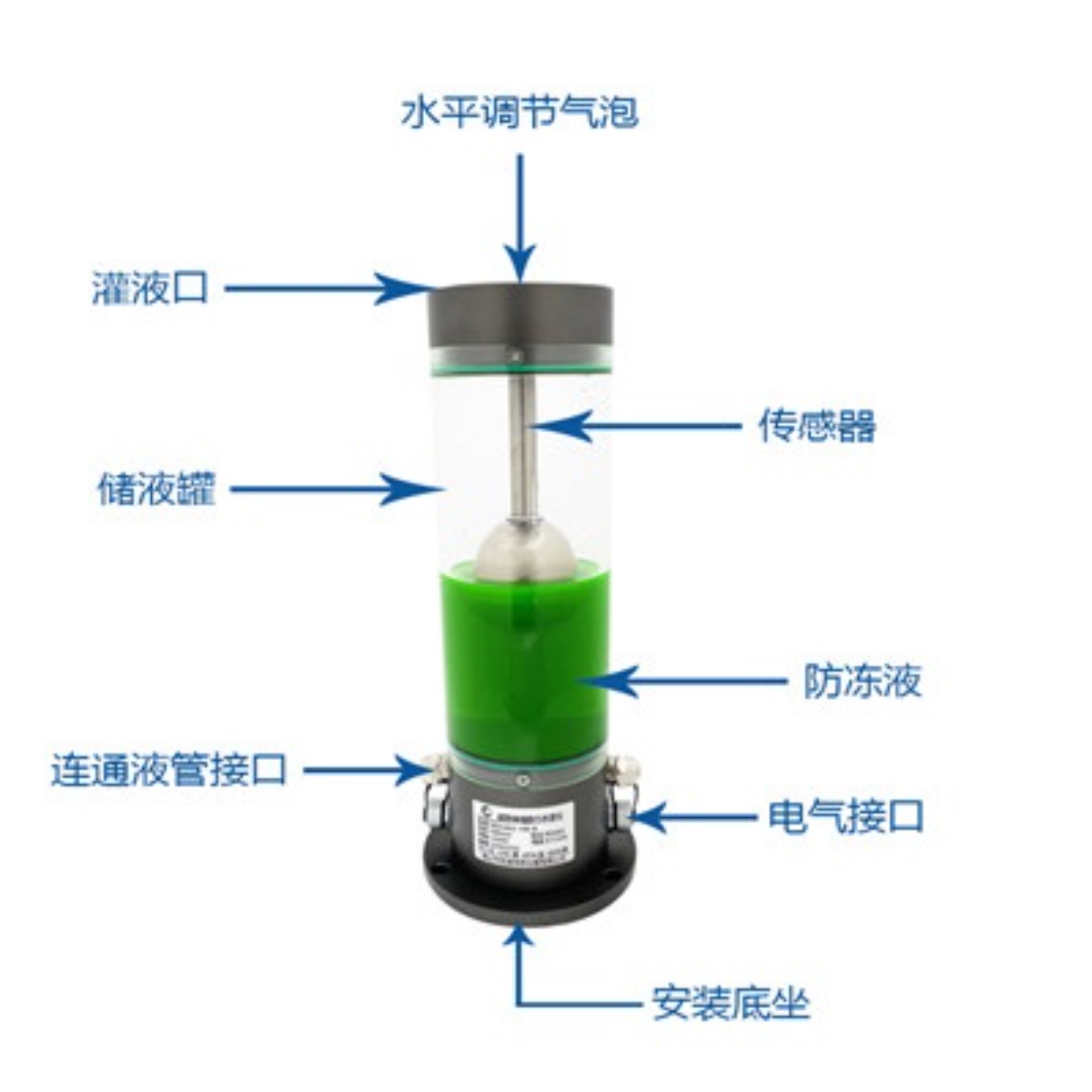 磁致伸縮式靜力水準儀是由一個高精度的磁致伸縮液位計,加上儲液罐、液位浮子、保護罩、調(diào)平支架、聯(lián)通氣管、水管等部件組成。